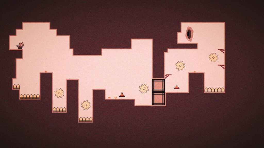 プレイヤーは猫を操作して、当たったら即死のギミックを避けながらゴールを目指すゲーム。