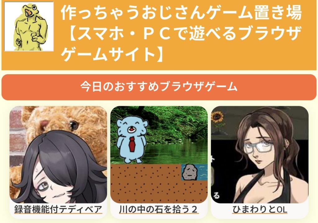このサイトを簡単に説明すると、制作者さんの作っちゃうおじさん様が制作した様々なジャンルのブラウザゲームを遊べるサイトなのだ。