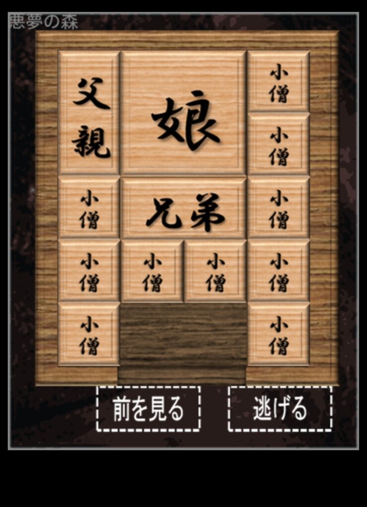 他のブロックより一回り大きい「娘」を周囲のブロックを動かして出口から外に出すパズルです。